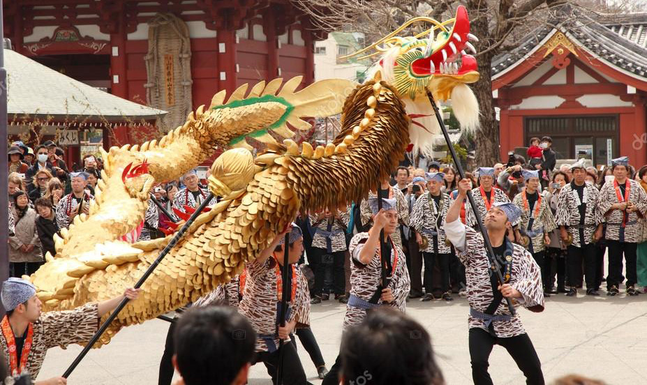 Le temple Senso-ji à Asakusa accueille tous les ans le 18 mars un événement particulier : la danse du dragon doré, ou Kinryu no Mai en japonais.