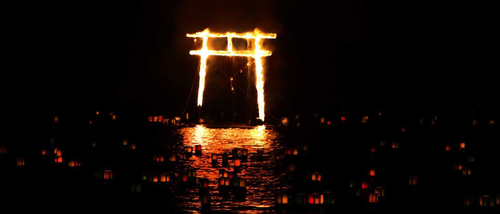 Mais également au programme : stands de nourriture, illuminations de lanternes (représentant les vœux des participants ; ces derniers les écrivent dans les lanternes qui seront emportées par les eaux, au moment de la cérémonie pendant laquelle on brûle le Torii) et feux d’artififes.