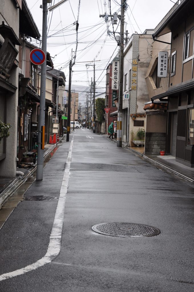 Je termine ma journée en rendant visite au temple nishi-honganji qui est situé de l’autre côté de l’avenue. Je ne fais que passer car, avec la pluie, tout est vraiment triste. Je rentre donc au ryokan. La vieille propriétaire m’apporte un thé (quelle attention !)