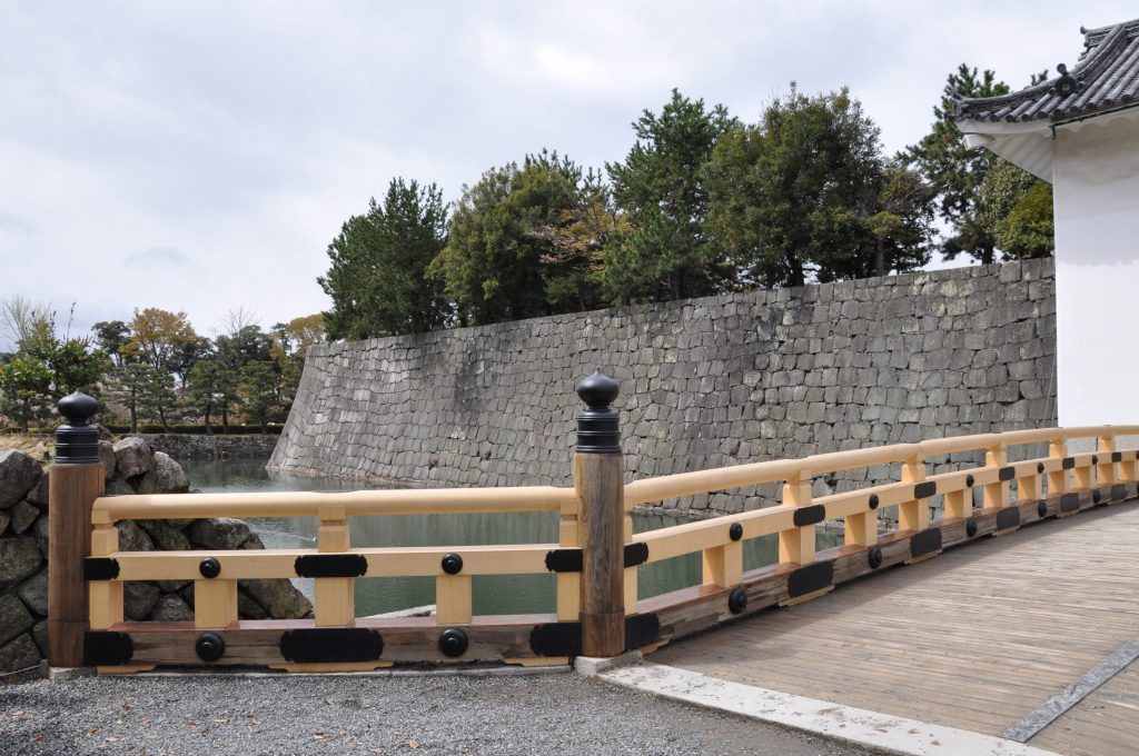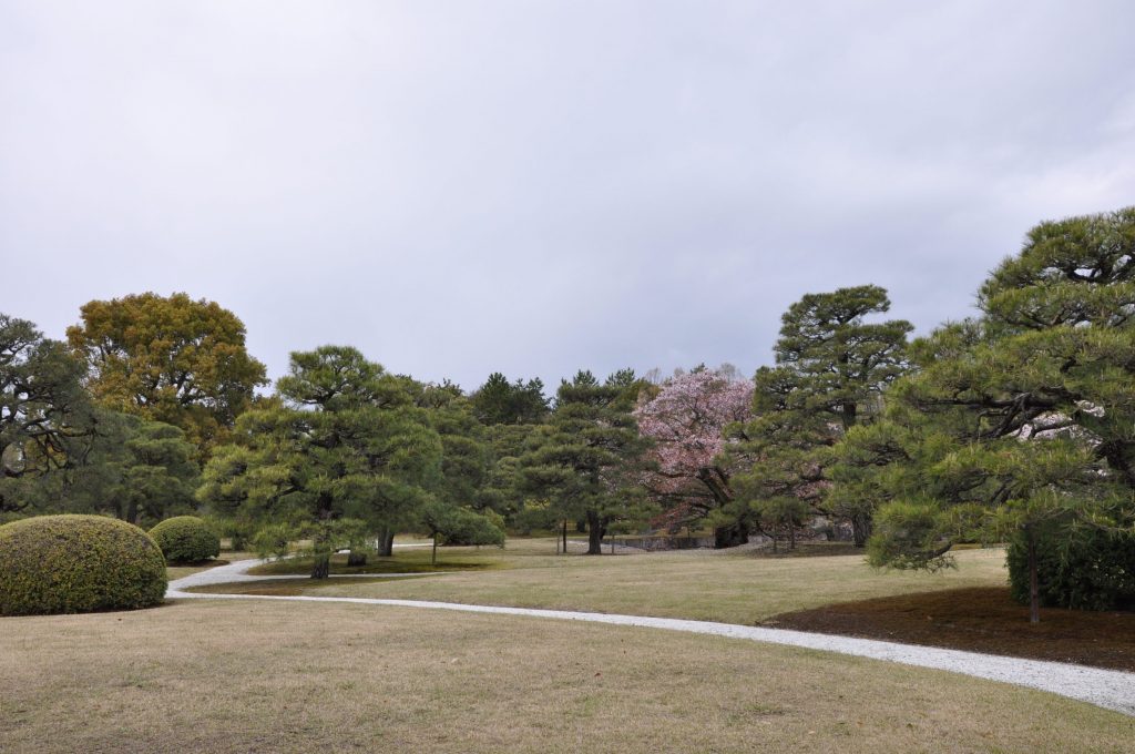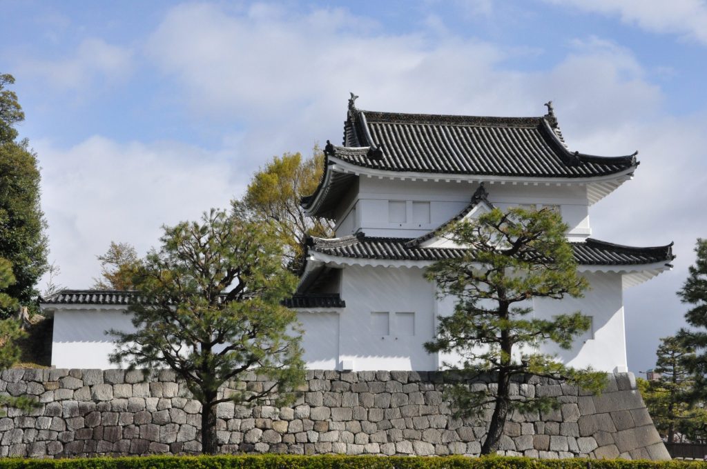 Dernière matinée à kyōto. Je dis au revoir à mes 2 gentils hôtes et je prends le métro jusqu’au château nijō, achevé en 1603 et dont la construction avait été ordonnée en 1600 par le shogun tokugawa ieyasu aux daimyō de l’Ouest du Japon. Le shogun résidait à edo (actuel tōkyō) mais le château de nijō lui servait de résidence lors de ses (très rares) visites à la capitale impériale. Pendant son absence, des samourai dépêchés depuis edo étaient en garnison au château. C’est dans ce château que le dernier shogun, tokugawa yoshinobu a annoncé en 1867 à ses vassaux présents à kyōto son intention de restaurer le pouvoir impérial (voir la rubrique culture > histoire). En 1884, le château est devenu une villa impériale. Offert à la ville de kyōto par l’agence impériale en 1939, de grands travaux de restauration sont entrepris depuis 2011.
