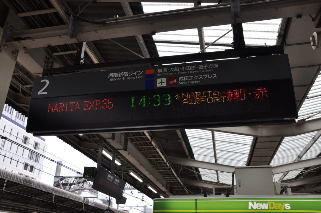 Pendant que Louise et Valentine se préparent, je confectionne une bonne salade comme celle d’hier midi. Et nous avons bien le temps de manger avant de partir à 13h30 pour la station Ikebukuro (sur la yamanote line) où je vais prendre le Narita Express pour l’aéroport international de tōkyō narita. On poste l’enveloppe contenant la pocket wifi et c’est à Ikebukuro qu’on se sépare. Les filles vont rejoindre Anabelle et Emmy. Petit pincement au cœur. Et j’attends le Narita Express de 14h34 qui arrive bientôt et me transporte en 1h20 environ au terminal 1 de l’aéroport. Je dis aurevoir à tōkyō (je ne sais si j’y reviendrai) et, après d’encore longues minutes d’immeubles et de maisons, se découvre un peu de campagne avec des champs qui sembleraient être des rizières (mais je n’en suis pas certain).